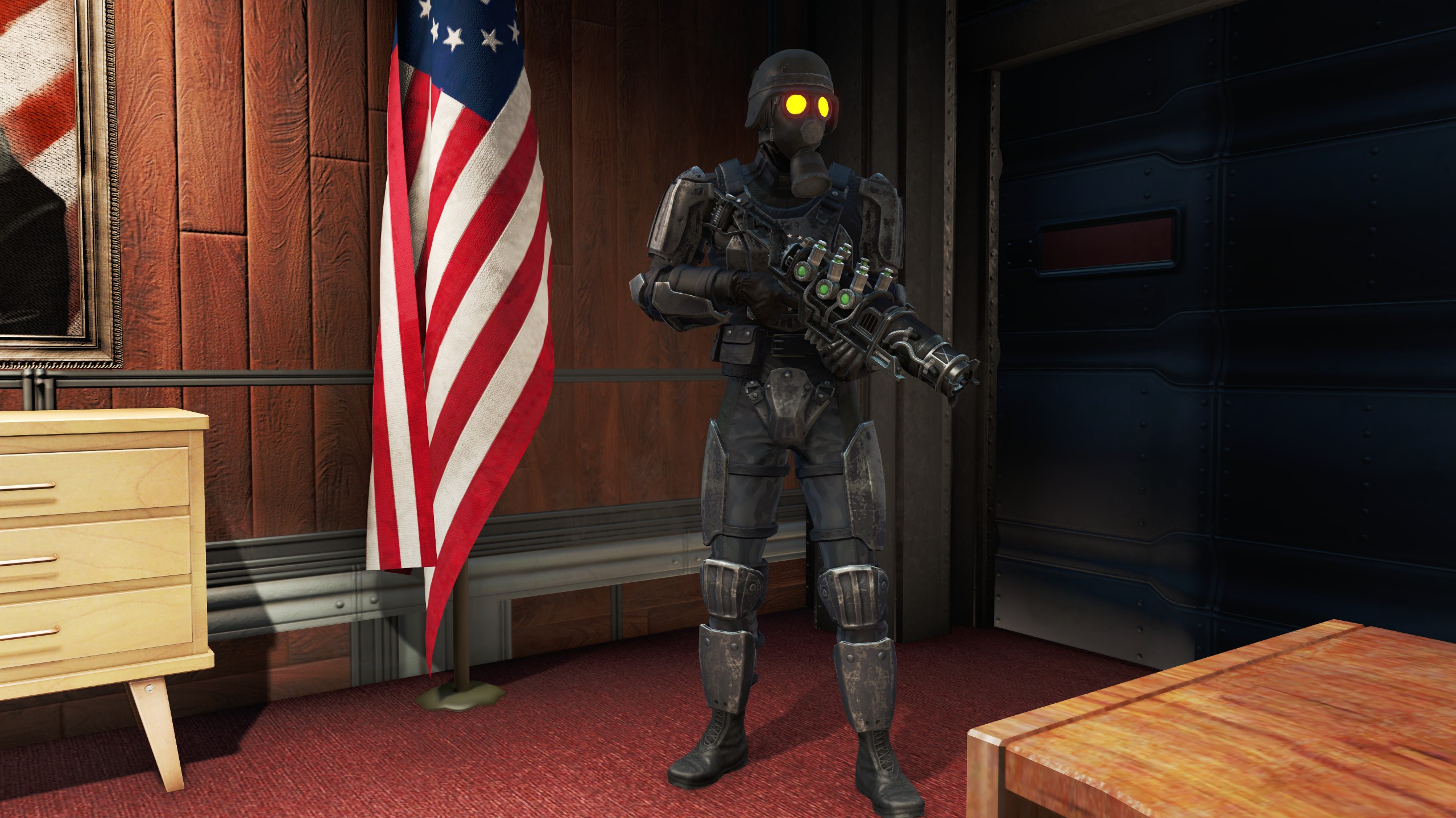 All the equipment has been created by Otellino and Wasteofspace95 with a combination of new textures and Outfit Studio work, except for the Enclave Covert Suit which uses Payton Quinn's fantastic Enclave Officers Uniform as a base.